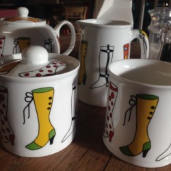 I have added to my own range of China Ware and I am delighted by the interest shown by our friends and visitors. I have two ranges, the first is Christmas Stocking – this was a great seller coming up to Christmas and now I have Ladies Boots available in mugs, jugs, cartons, cake plates, sugar bowls and tea pots, they are proving very popular so thank you all who have bought them.
